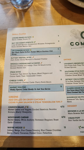 For dinner, dive into the crispy and flavorful Duck Fat Fried Chicken or the classic Detroit Fish & Chips. If you're feeling fancy, the Common Pub Steak is sure to impress, while the Cass Ave Crab Cakes bring a touch of coastal indulgence to your plate.